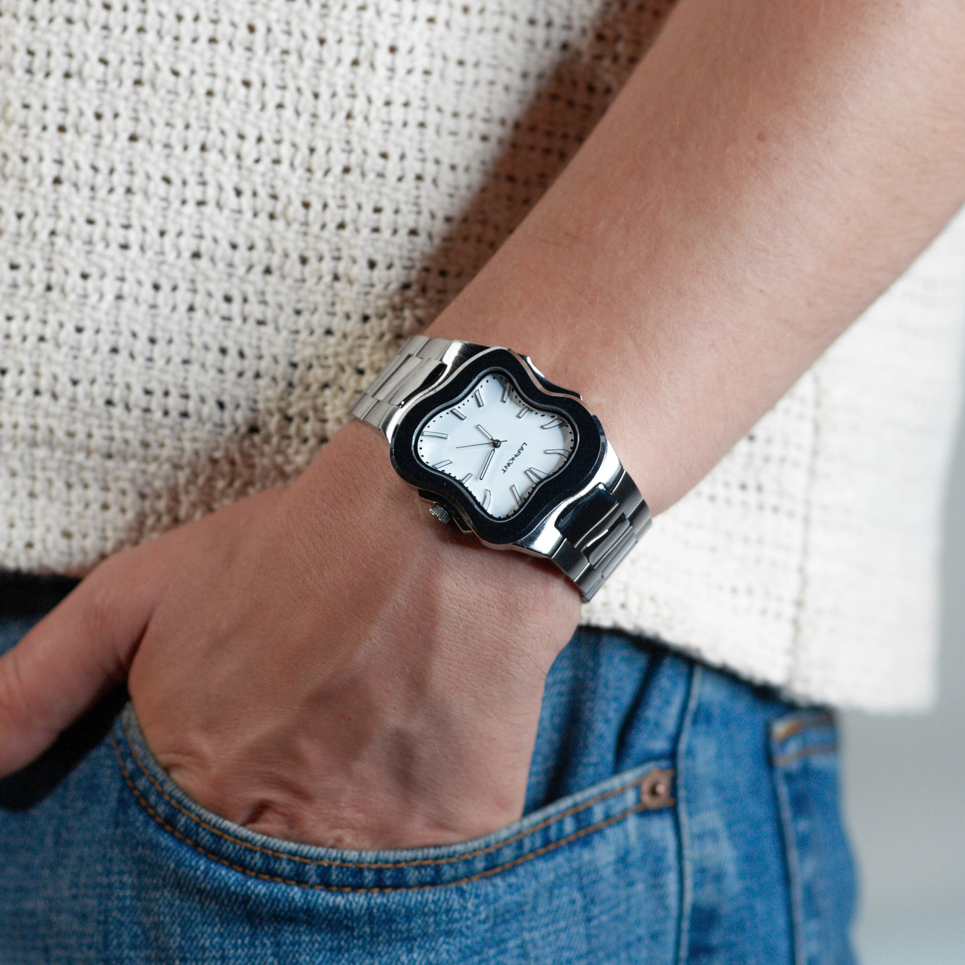 Square Melting Watch Large Silver