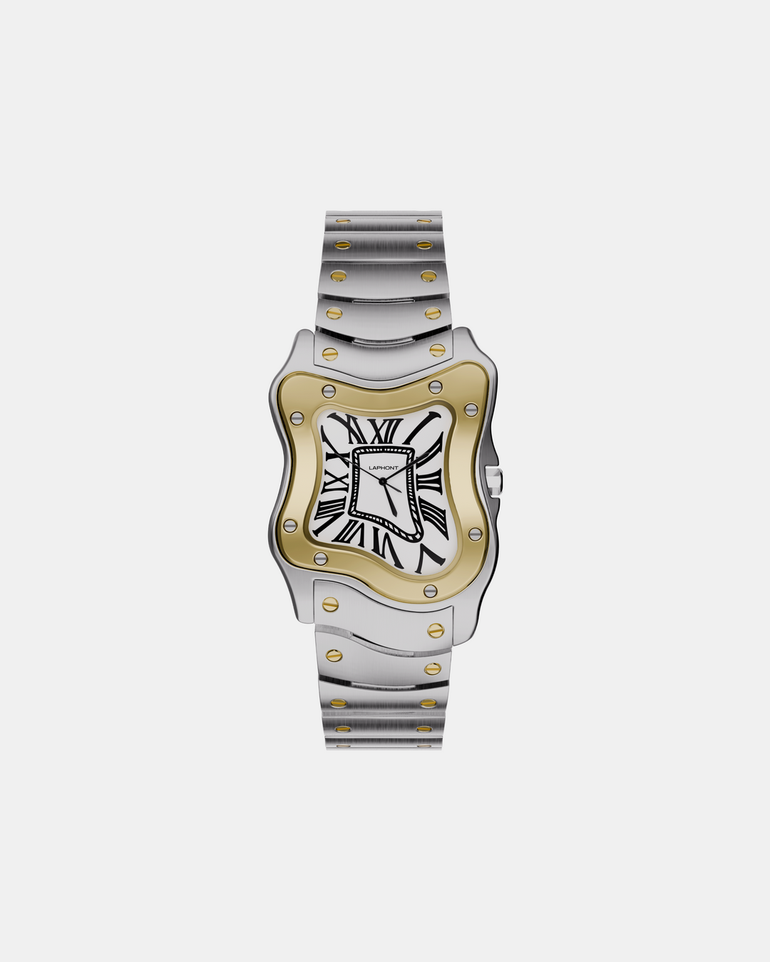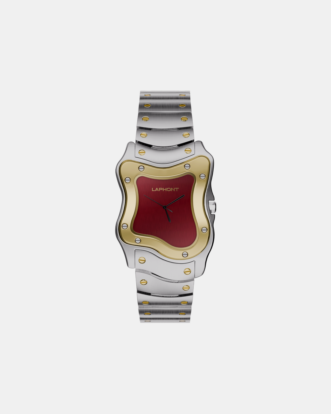 • 14 Karat Gold and Alloy plated asymmetric brass case